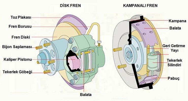 - Diskli fren sistemlerinde kampanaya göre fren pedalına daha yüksek bir kuvvet uygulamanız gerekir.
